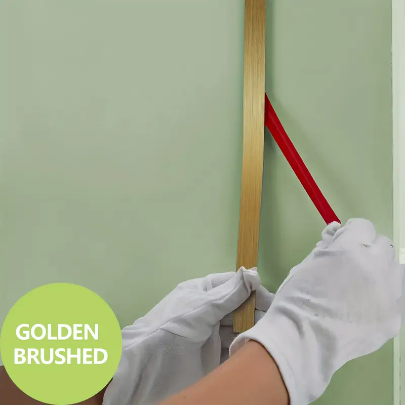 Este o bandă metalică flexibilă realizată din oțel inoxidabil nichelat cu finisaj auriu mat periat, folosită pentru decorarea pereților, mobilierului, oglinzilor și muchiilor. Are spate autoadeziv puternic și strat protector PVD care o face rezistentă la apă, coroziune și zgârieturi.