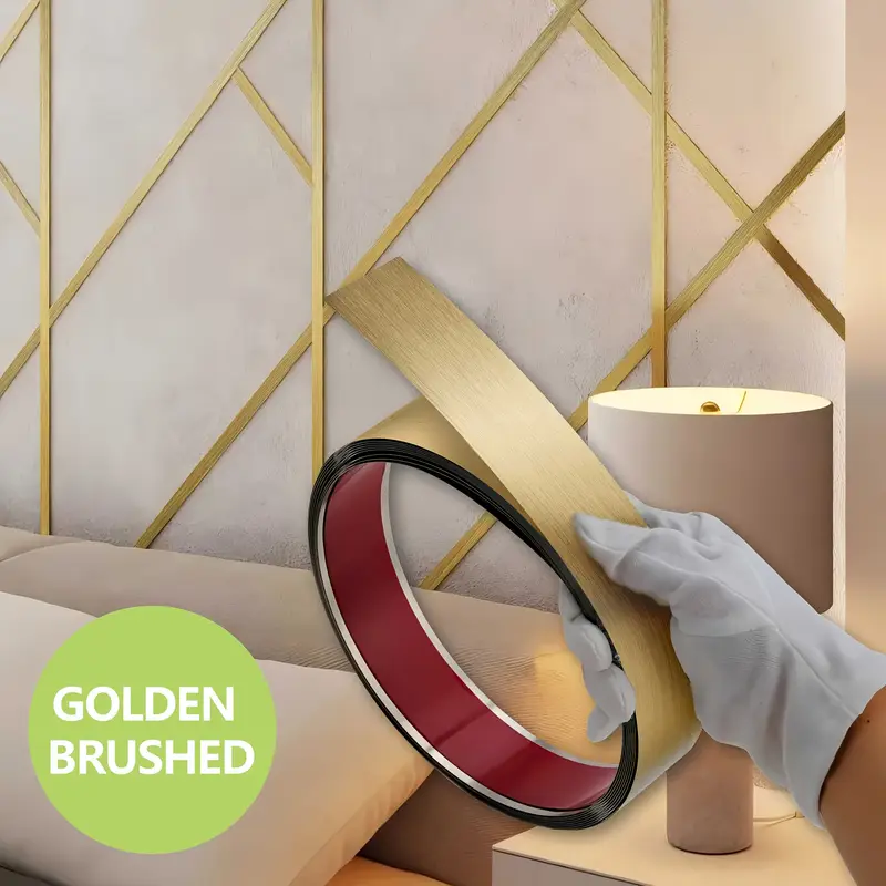Este o bandă metalică flexibilă realizată din oțel inoxidabil nichelat cu finisaj auriu mat periat, folosită pentru decorarea pereților, mobilierului, oglinzilor și muchiilor. Are spate autoadeziv puternic și strat protector PVD care o face rezistentă la apă, coroziune și zgârieturi.