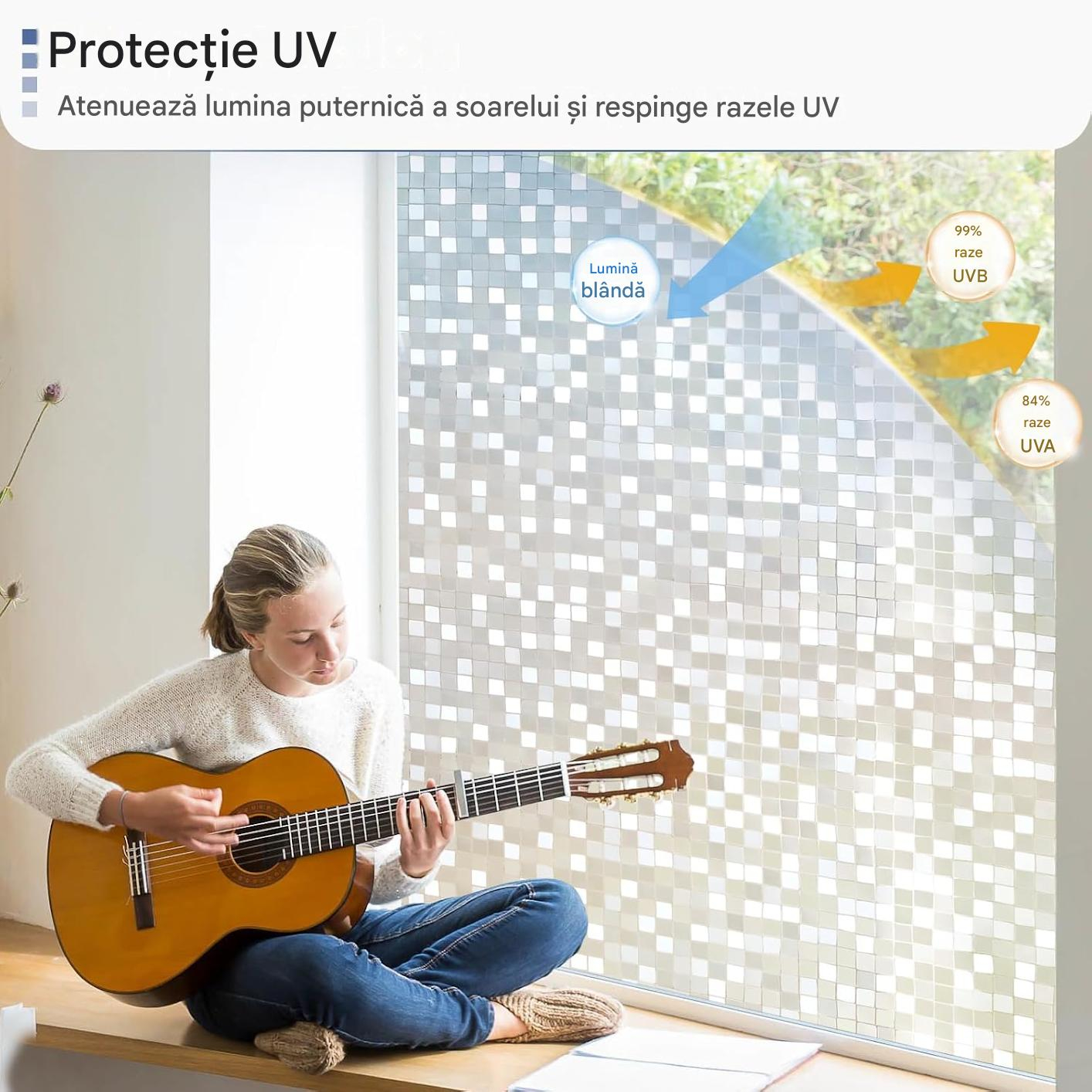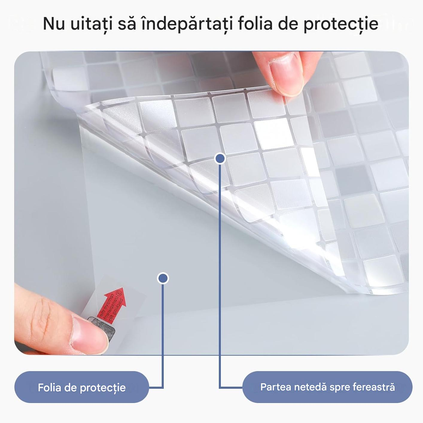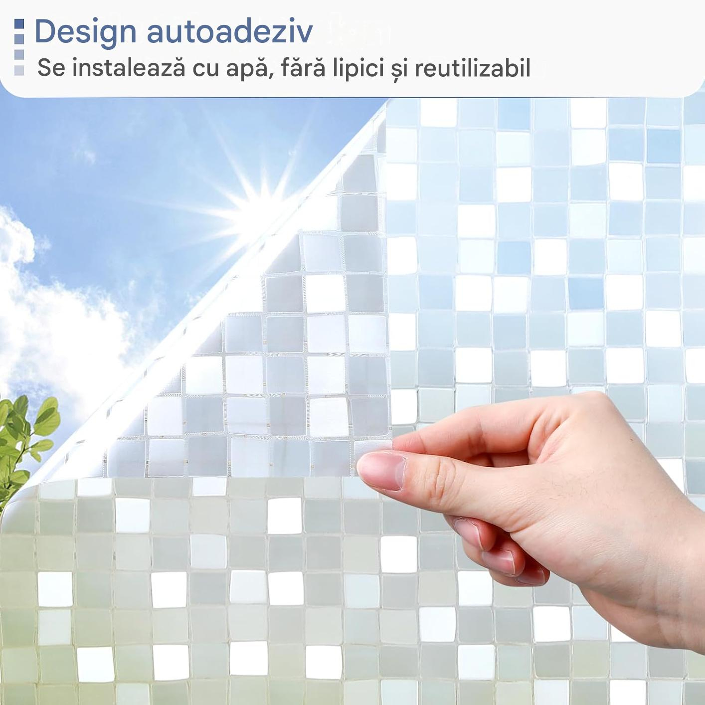 Folie Autoadezivă Electrostatica pentru Geamuri și Ferestre, Model Mozaic Sablat, Protecție Intimitate și Decorativă, Dimensiuni 60 x 200 cm
