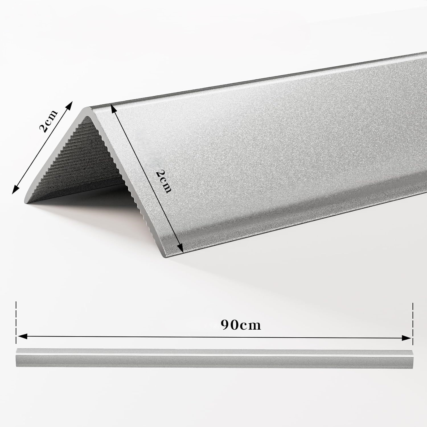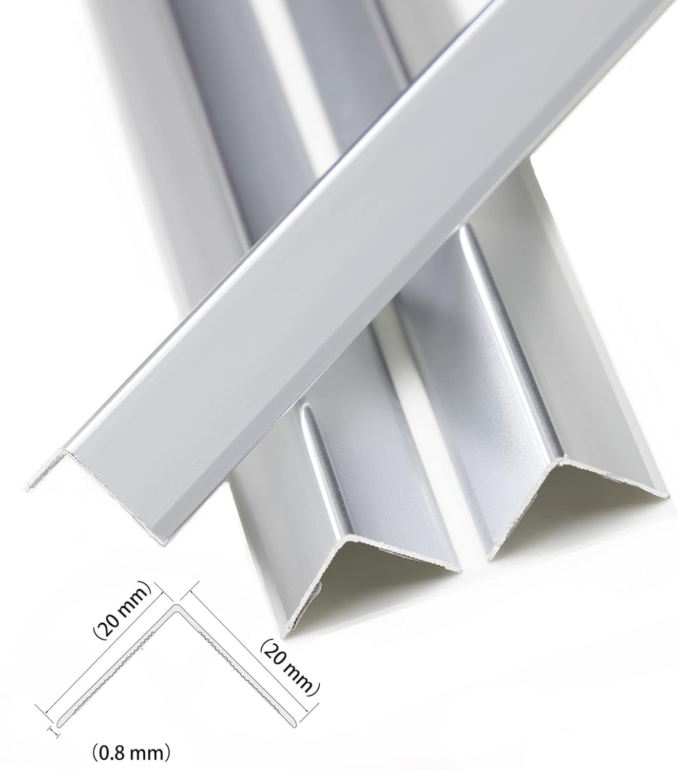 Silver - Protector colț perete sau mobila Argintiu, Aluminiu, Autoadeziv, 20x20mm latime – Set 3 bucăți x 90 cm (270 cm total) – MaffStuff®